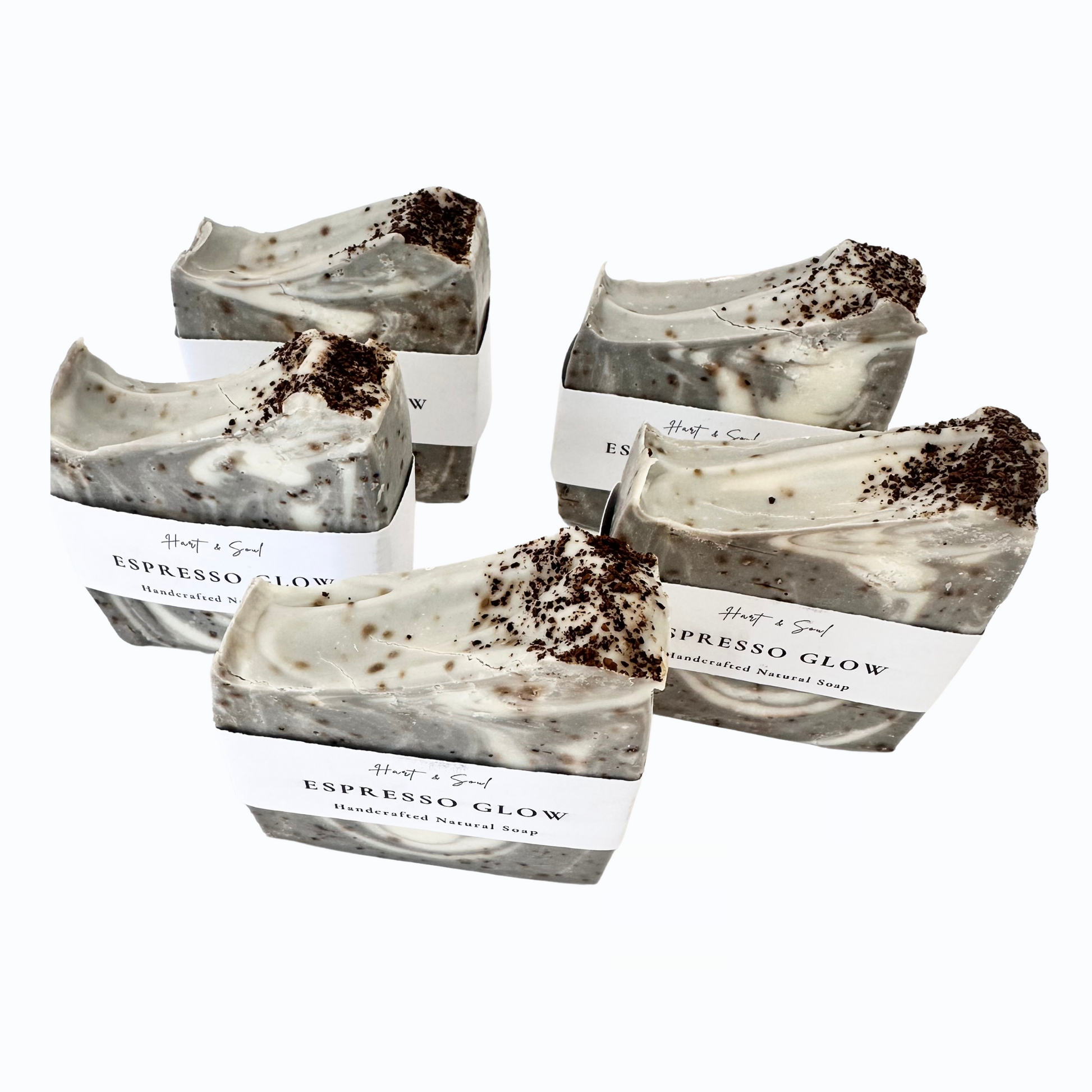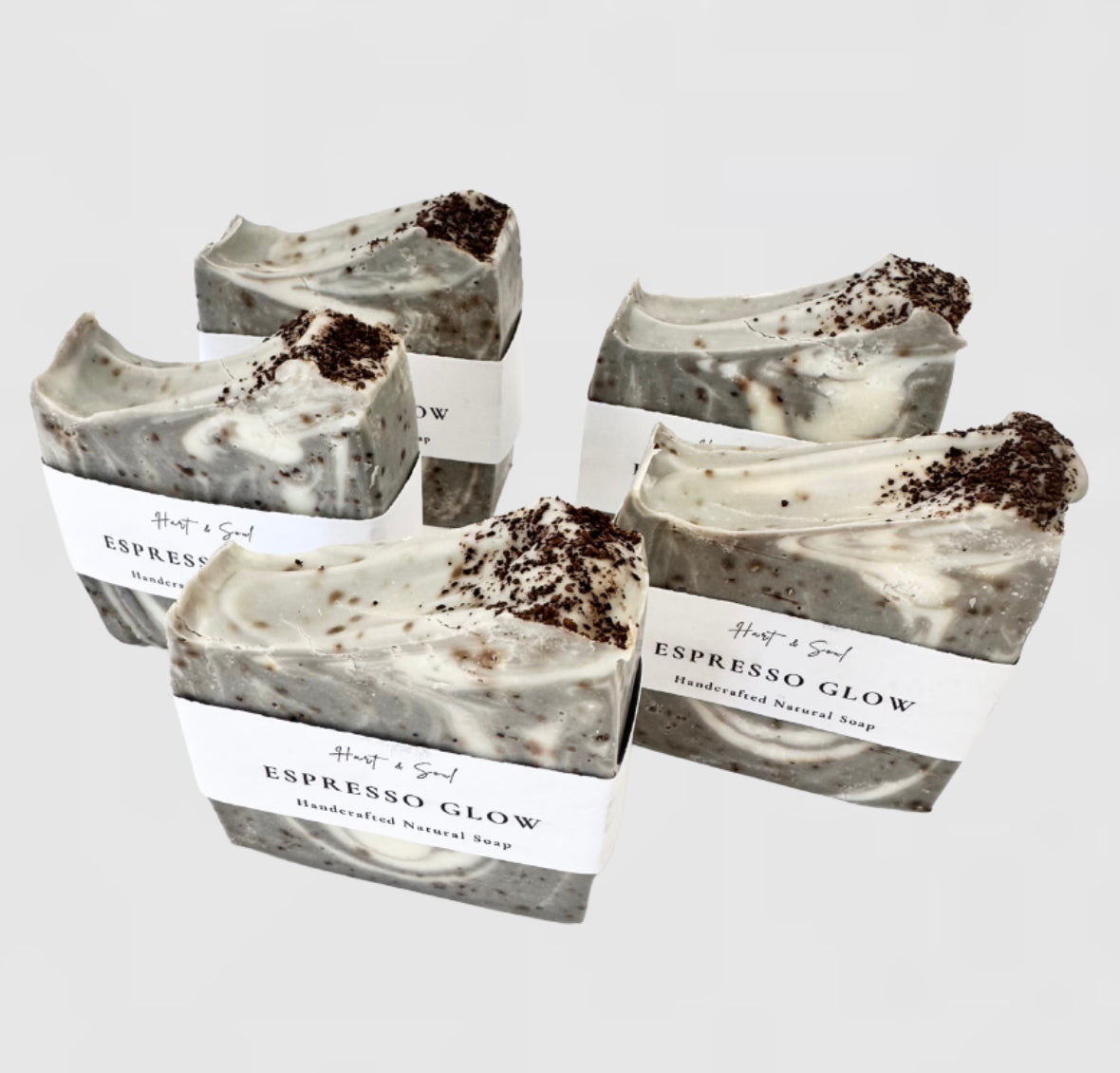 Espresso Glow– Coconut oil, shea butter, refined olive oil, distilled water, sodium hydroxide, brazilian chocolate clay, grounded coffee, cedarwood essential oil.