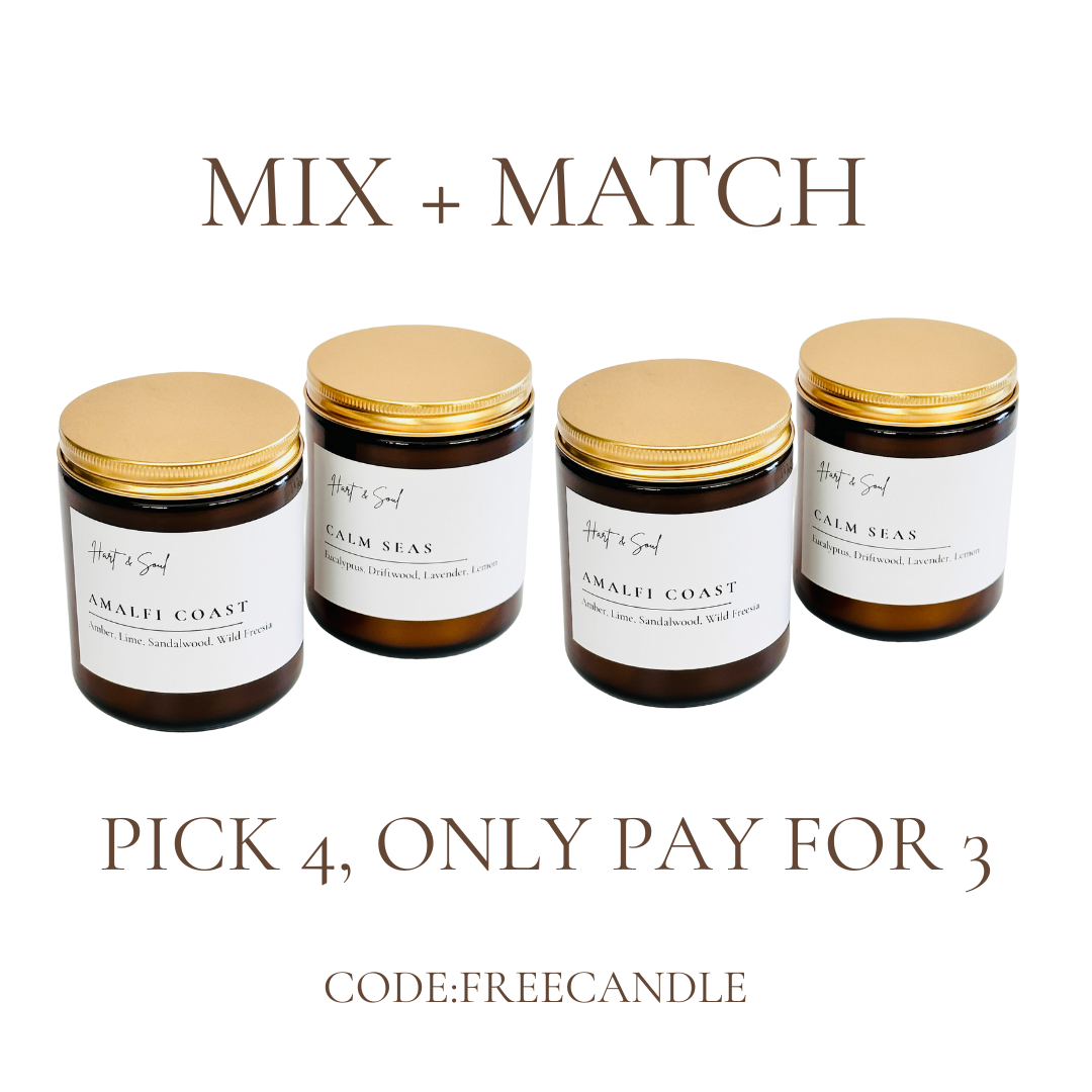 PICK 4, PAY FOR 3 Simply add four candles to your cart and use CODE: FREECANDLE at checkout.