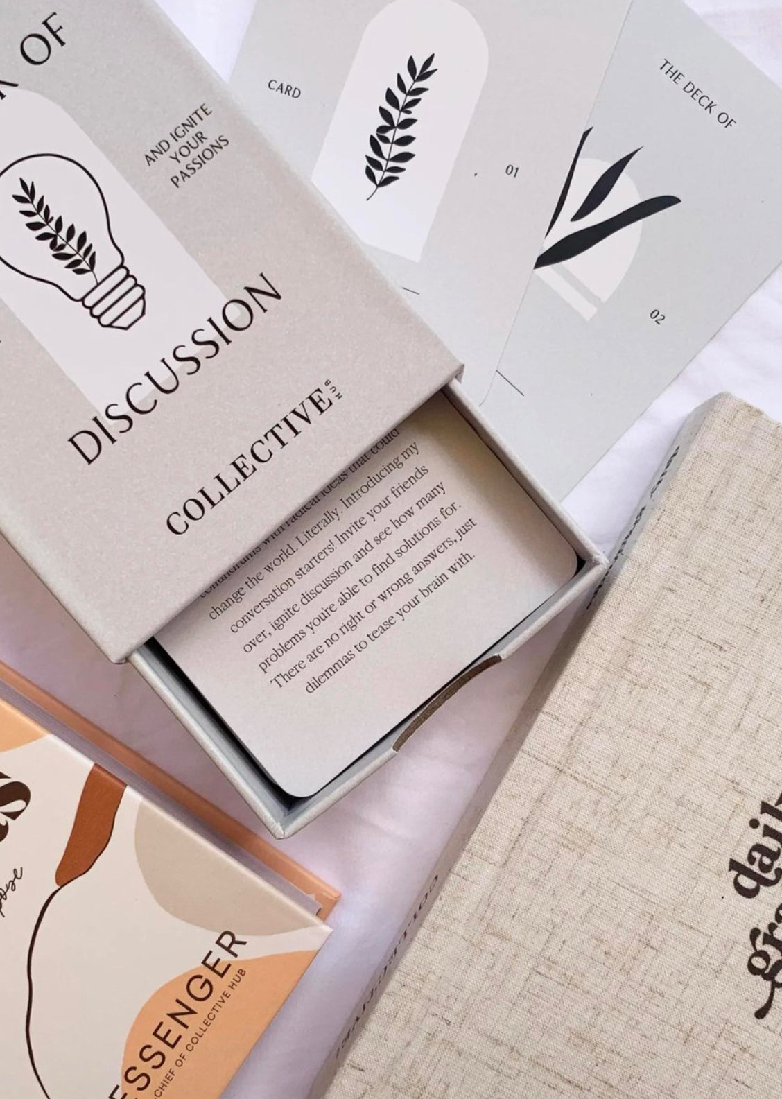 Collective Hub's Deck of Discussion has 52 business conversation starters are designed to challenge your preconceptions and force you to think outside the box. There are no right or wrong answers, rather there is the freedom to choose the solution that makes the most sense to you. But will your friends agree? Herein lies the fun. Use these cards to explore, debate, solve and share ideas with others.